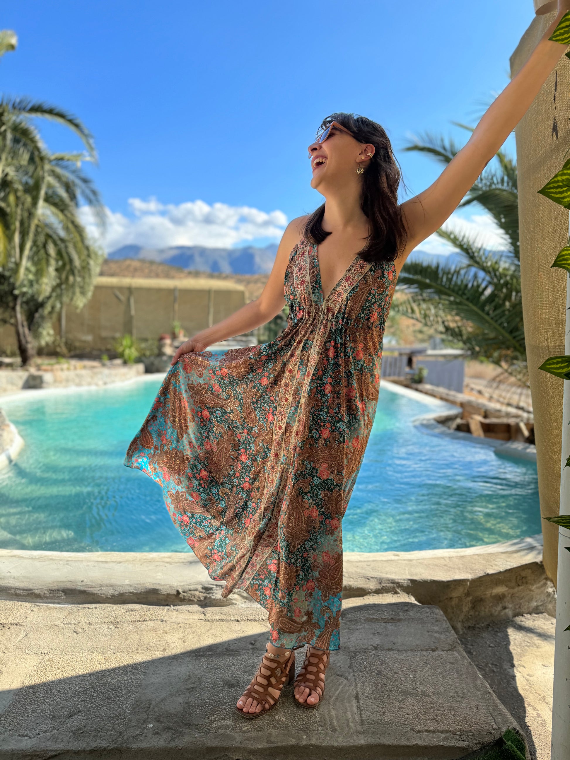 Explora la elegancia y el encanto de la cultura hindú con este vestido largo, hecho 100% de seda premium. Su diseño único combina detalles tradicionales y un toque moderno, creando una pieza ideal para eventos especiales o para destacar en el día a día. Confeccionado para brindar suavidad y fluidez, este vestido realza la silueta con un estilo etéreo y sofisticado. Su tela de seda es ligera y fresca, perfecta para cualquier estación. Transforma tu look con la calidad y lujo que este vestido hindú tiene para ofrecer.